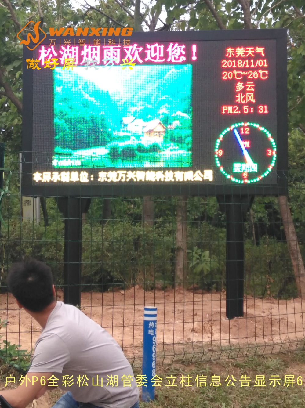 东莞LED,户外P6全彩松山湖管委会立柱信息公告显示屏