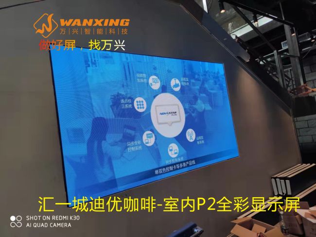 东莞LED,汇一城迪优咖啡-室内P2全彩显示屏